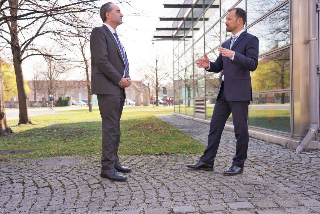 Bayerns Wirtschaftsminister Aiwanger im Gespräch mit dem Geschäftsführer der SWM Infrastruktur GmbH zur Energieversorgung