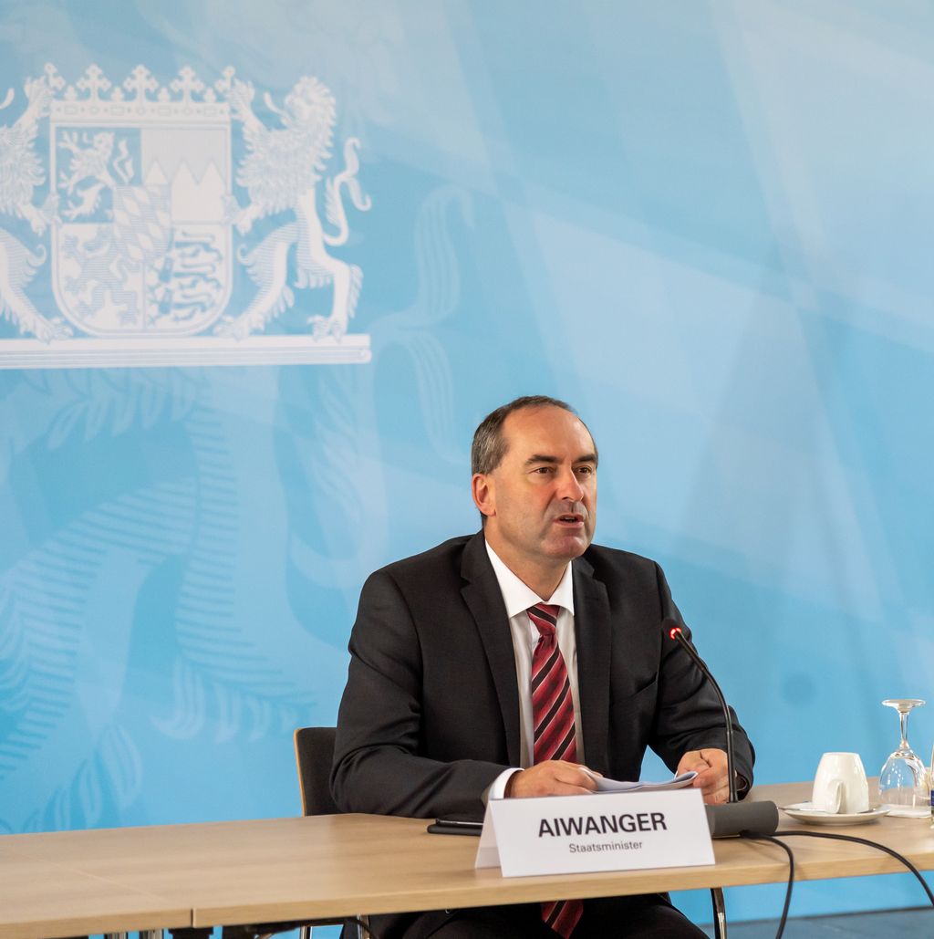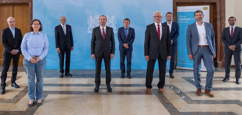 Bayerns Wirtschaftsminister Hubert Aiwanger begrüßt das Institut für Energietechnik, die Stadtwerke Haßfurt und 2G Energy im "Team Energiewende Bayern". © StMWi/E. Neureuther Bild herunterladen 8 MB
