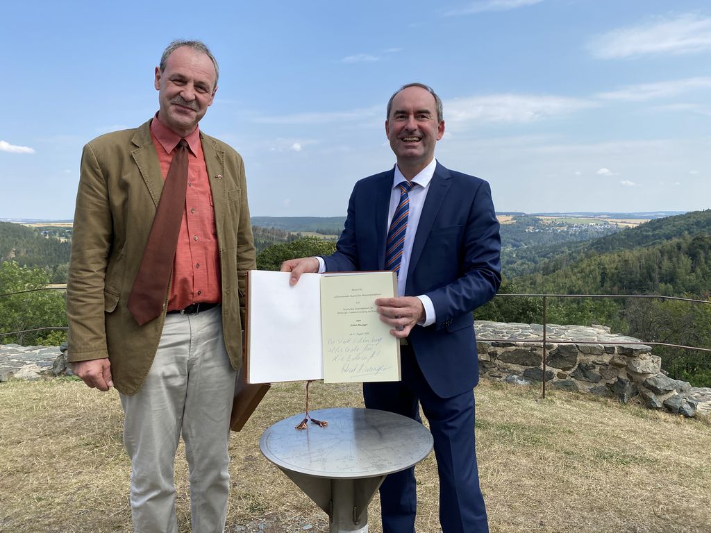 v.l.n.r. : Wirtschaftsminister Hubert Aiwanger und Matthias Quehl (Stadt Lichtenberg) © StMWi Bild herunterladen 4 MB