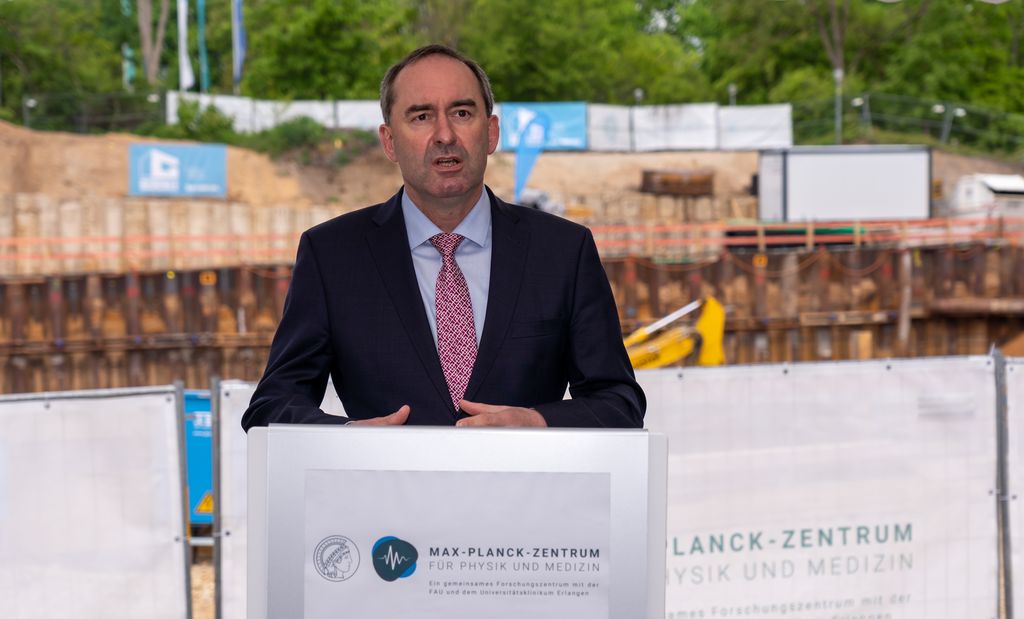 Bayerns Wirtschaftsminister Aiwanger bei Grundsteinlegung des Max-Planck-Zentrums für Physik und Medizin (MPZPM) in Erlangen