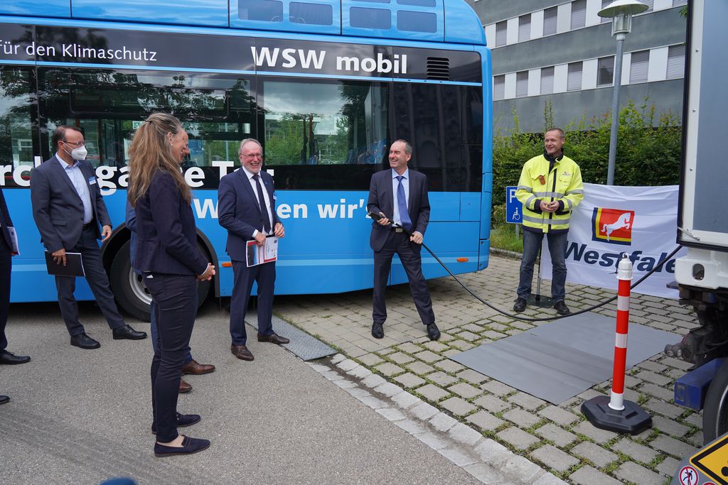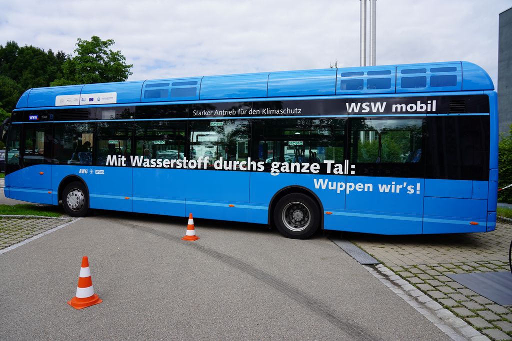 Wasserstoffbus aus Wuppertal, Teil der „Modellregion Wasserstoffmobilität NRW“. © StMWi/E.Neureuther Bild herunterladen 9 MB