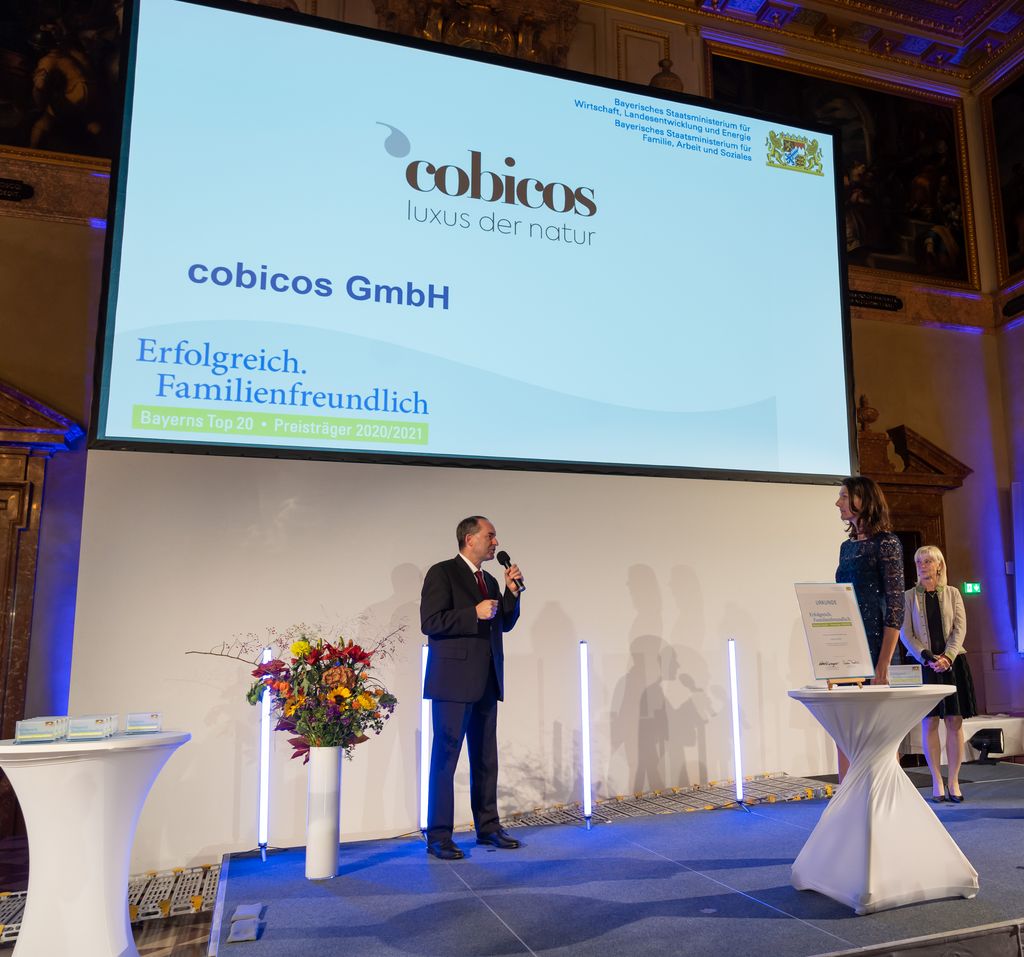 Die cobicos GmbH aus Landshut erhält die Auszeichnung "Erfolgreich.Familienfreundlich". © StMWi/E.Neureuther Bild herunterladen 3 MB