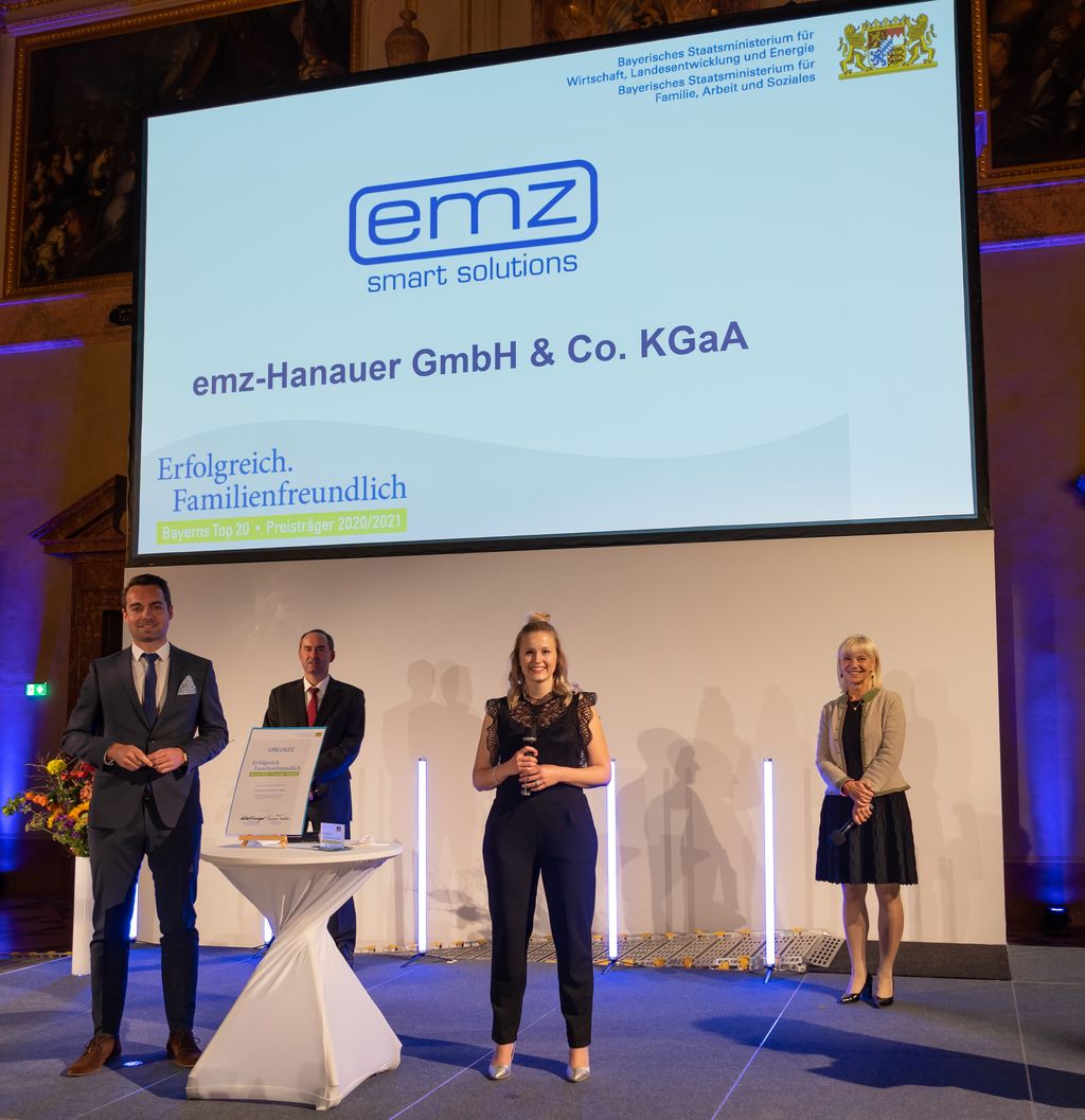 Die emz-Hanauer GmbH & Co. KGaA aus Nabburg erhält die Auszeichnung "Erfolgreich.Familienfreundlich". © StMWi/E.Neureuther Bild herunterladen 2 MB
