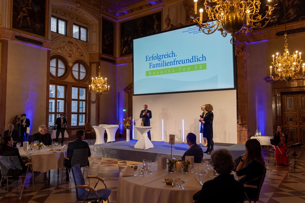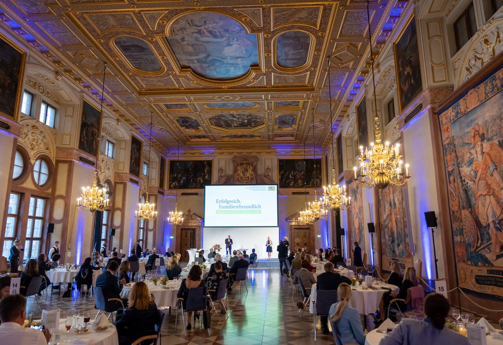Bayerns Wirtschaftsminister Hubert Aiwanger und Arbeitsministerin Carolina Trautner zeichnen in der Residenz Bayerns familienfreundlichste Unternehmen aus. © StMWi/E.Neureuther Bild herunterladen 7 MB