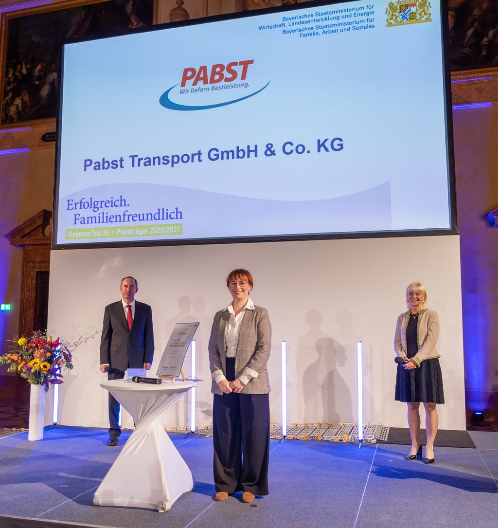 Die Pabst Transport GmbH & Co.KG aus Gochsheim erhält die Auszeichnung "Erfolgreich.Familienfreundlich". © StMWi/E.Neureuther Bild herunterladen 2 MB