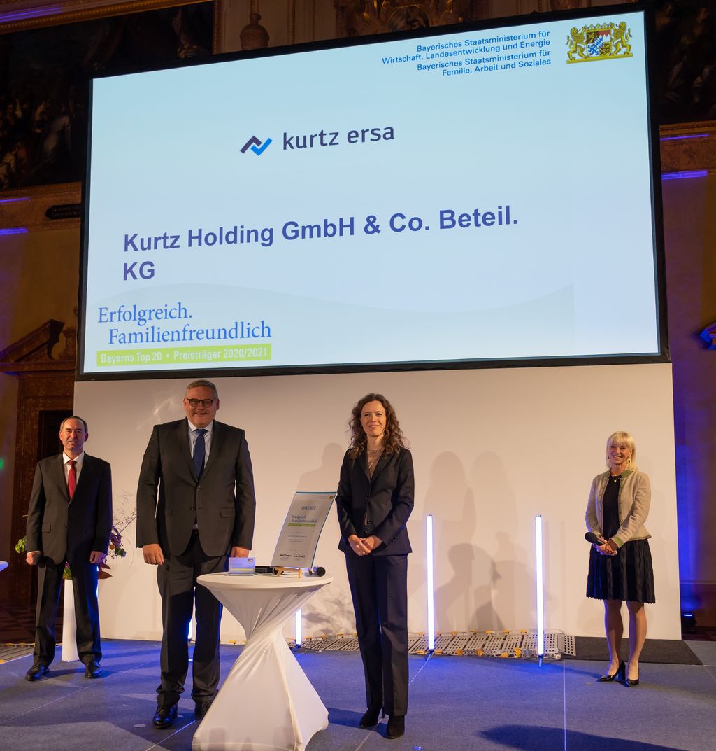 Die Kurtz Holding GmbH & Co. Beteil. KG Kreuzwertheim erhält die Auszeichnung "Erfolgreich.Familienfreundlich". © StMWi/E.Neureuther Bild herunterladen 2 MB