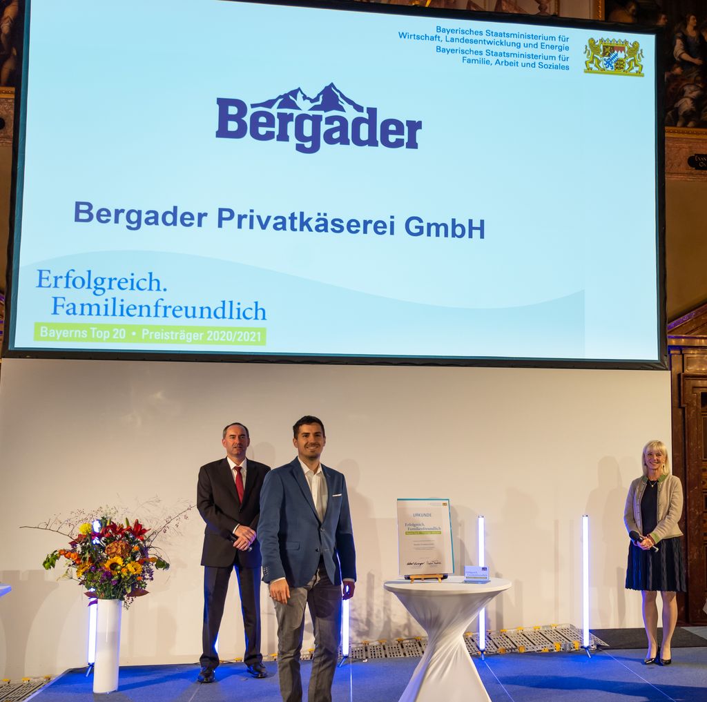Die Bergader Privatkäserei GmbH aus Waging erhält die Auszeichnung "Erfolgreich.Familienfreundlich". © StMWi/E.Neureuther Bild herunterladen 2 MB