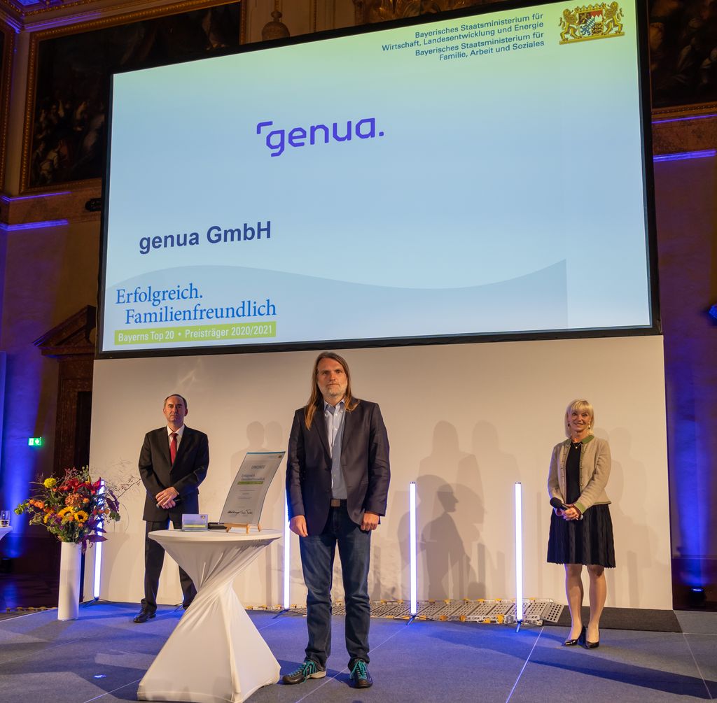 Die genua GmbH aus Kirchheim bei München erhält die Auszeichnung "Erfolgreich.Familienfreundlich". © StMWi/E.Neureuther Bild herunterladen 2 MB