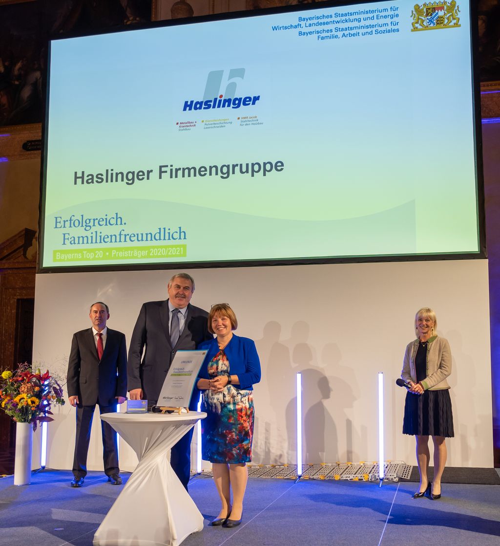 Die Haslinger Firmengruppe erhält die Auszeichnung "Erfolgreich.Familienfreundlich". © StMWi/E.Neureuther Bild herunterladen 2 MB