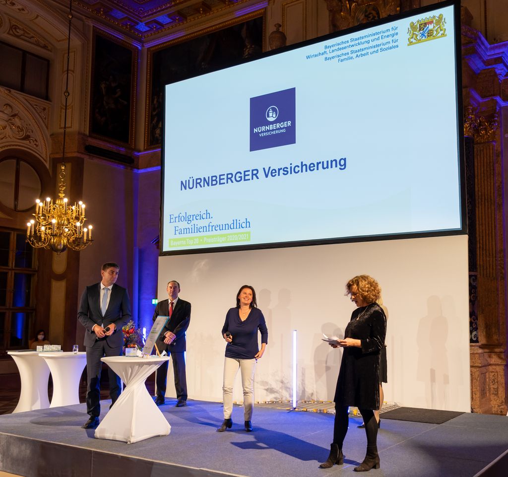 Die NÜRNBERGER Versicherung aus Nürnberg erhält die Auszeichnung "Erfolgreich.Familienfreundlich". © StMWi/E.Neureuther Bild herunterladen 2 MB