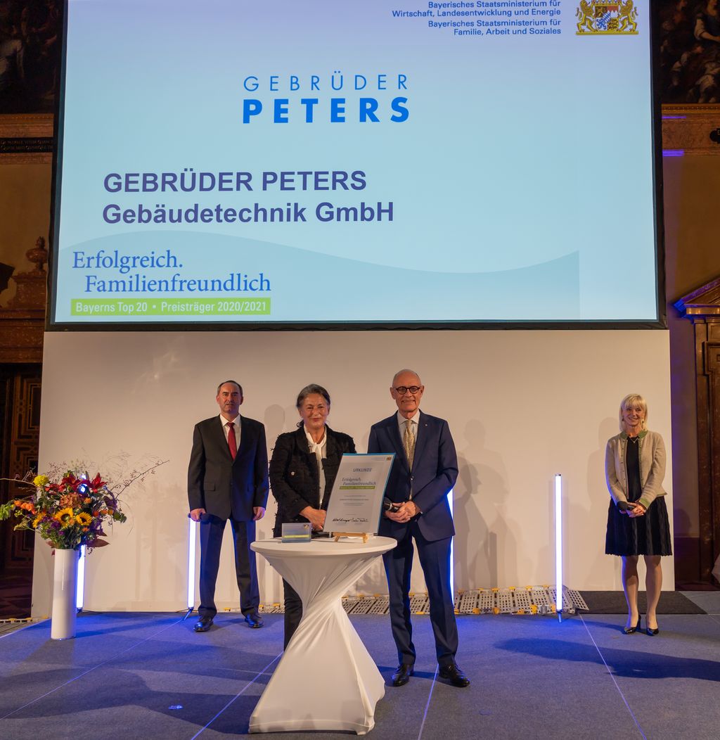 Die GEBRÜDER PETERS Gebäudetechnik GmbH aus Ingolstadt erhält die Auszeichnung "Erfolgreich.Familienfreundlich". © StMWi/E.Neureuther Bild herunterladen 2 MB