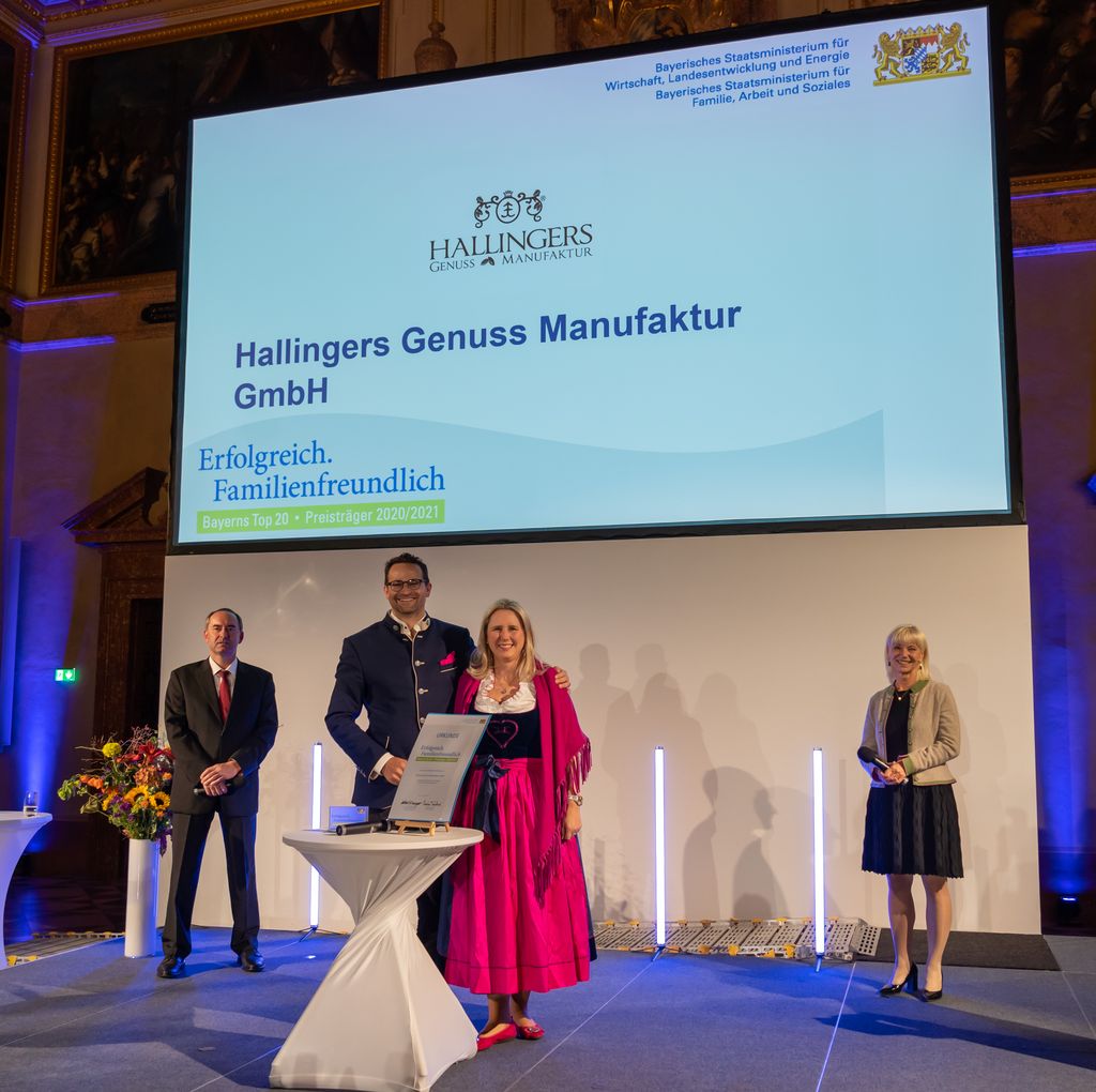 Die Hallingers Genuss Manufaktur aus Landsberg am Lech erhält die Auszeichnung "Erfolgreich.Familienfreundlich". © StMWi/E.Neureuther Bild herunterladen 2 MB