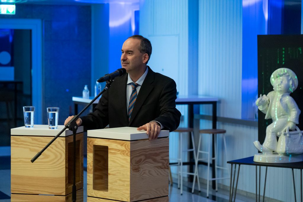 Bayerns Wirtschaftsminister Hubert Aiwanger spricht bei der Eröffnungsfeier des Digitalen Gründerzentrums. © StMWi/E.Neureuther Bild herunterladen 20 MB