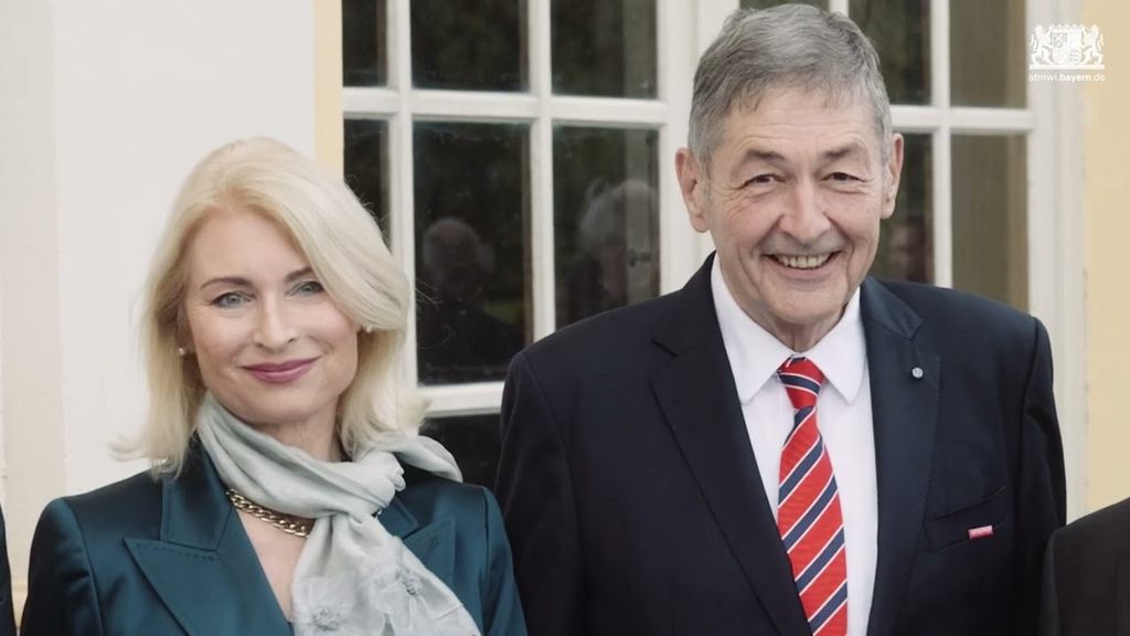 Bayerns Wirtschaftsminister Hubert Aiwanger übergibt die Auszeichnung "Bayerische Unternehmerin des Jahres 2025" an Frau Stefanie Riedel. Bild herunterladen 454 KB