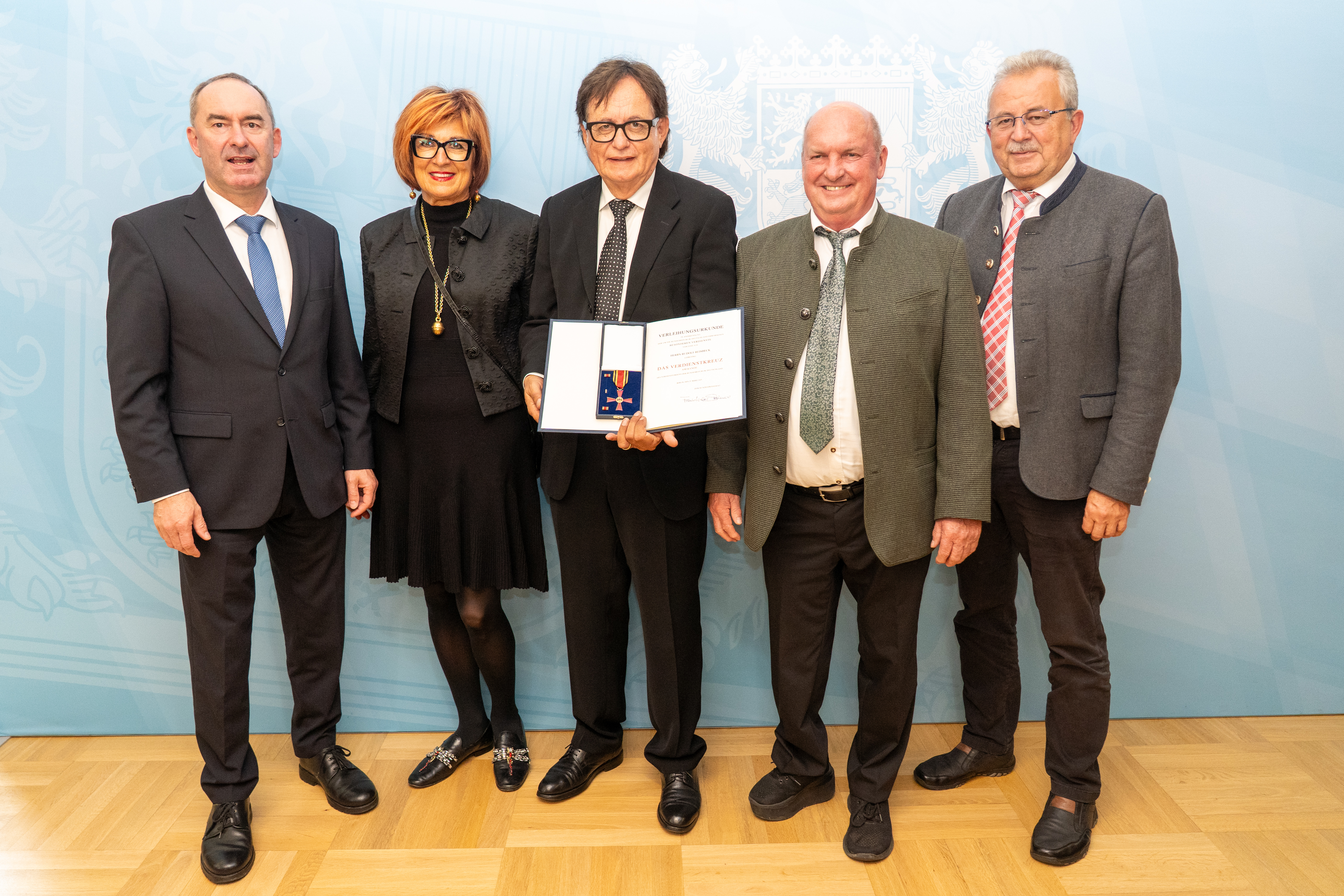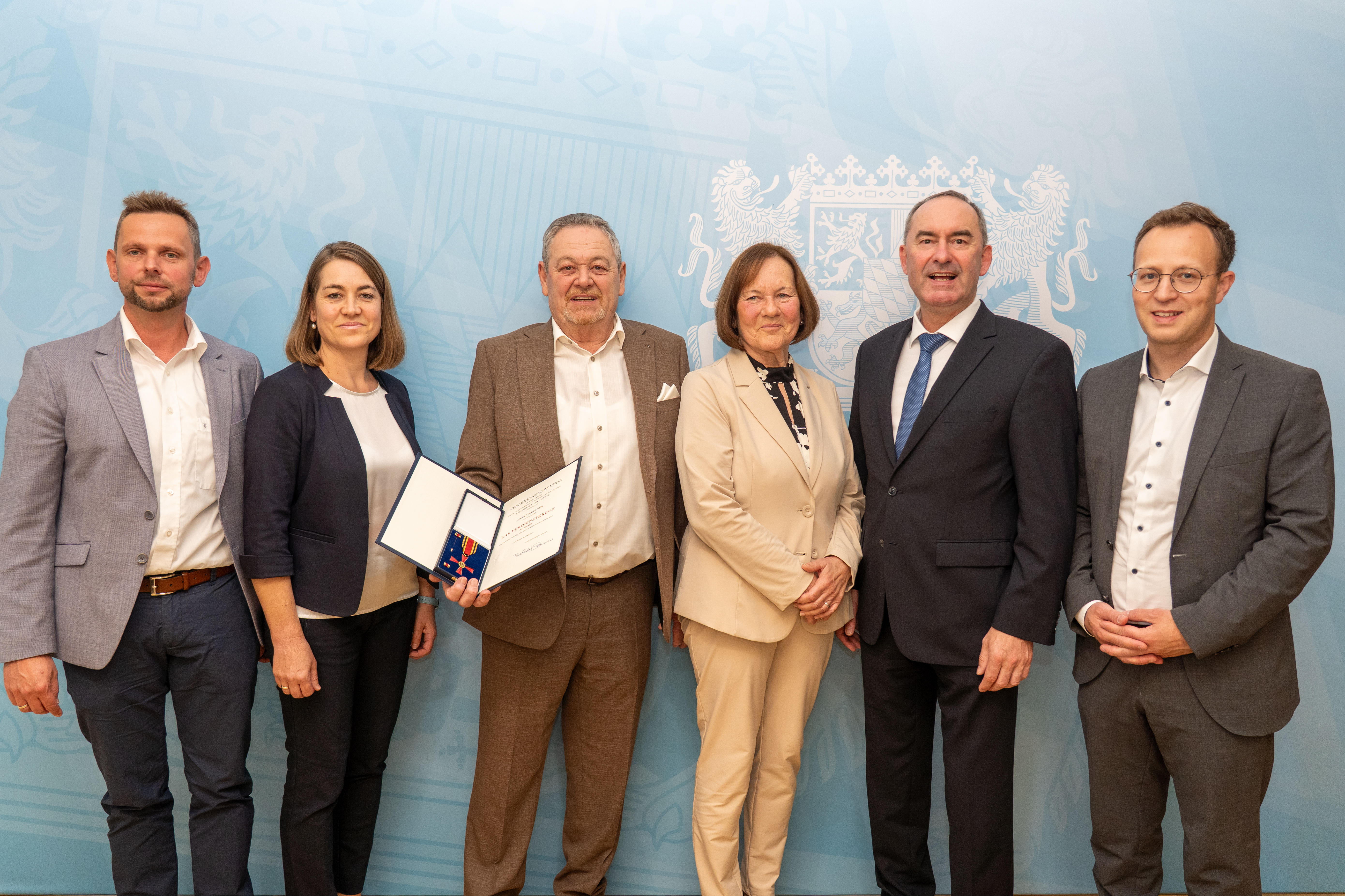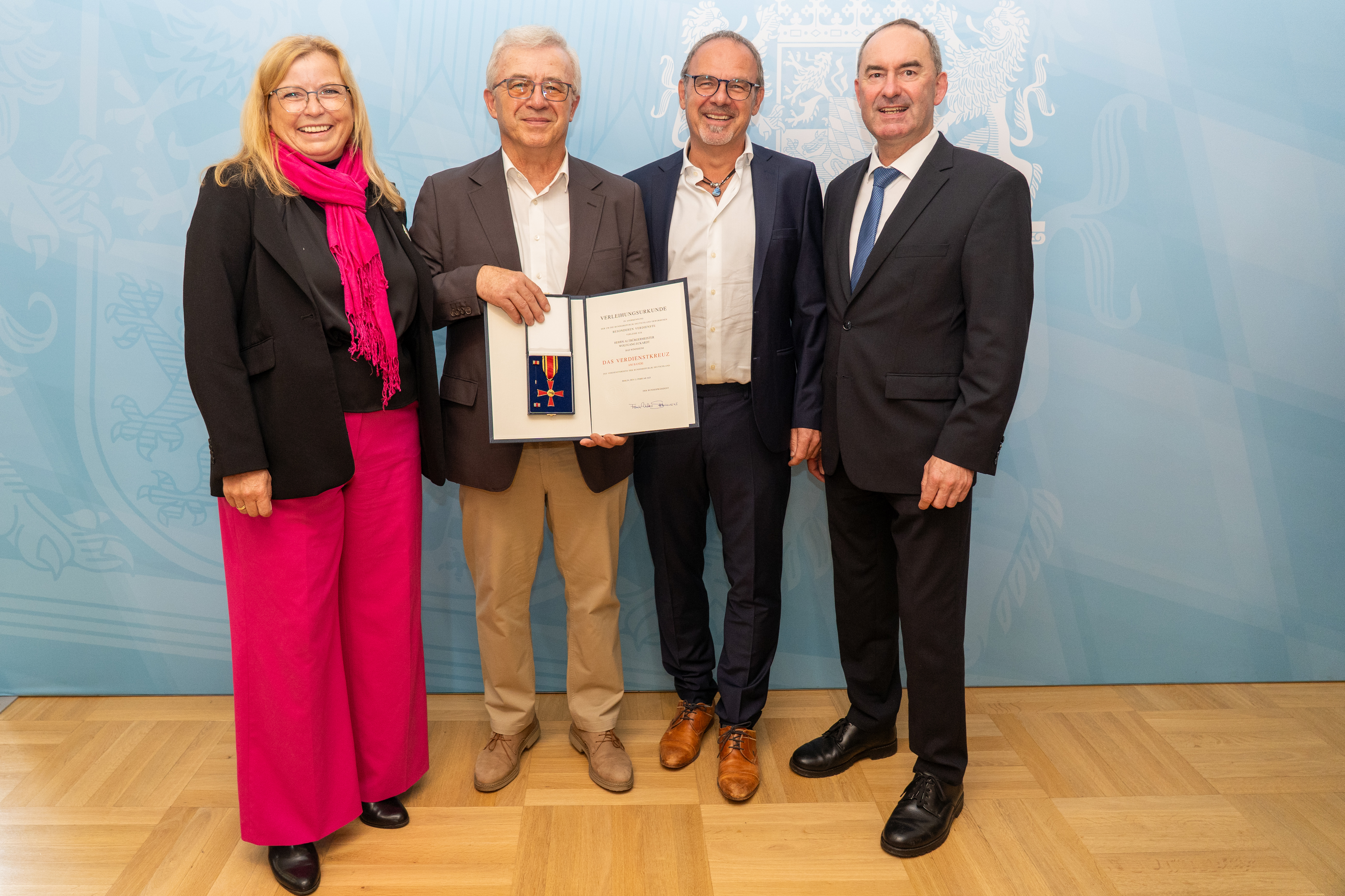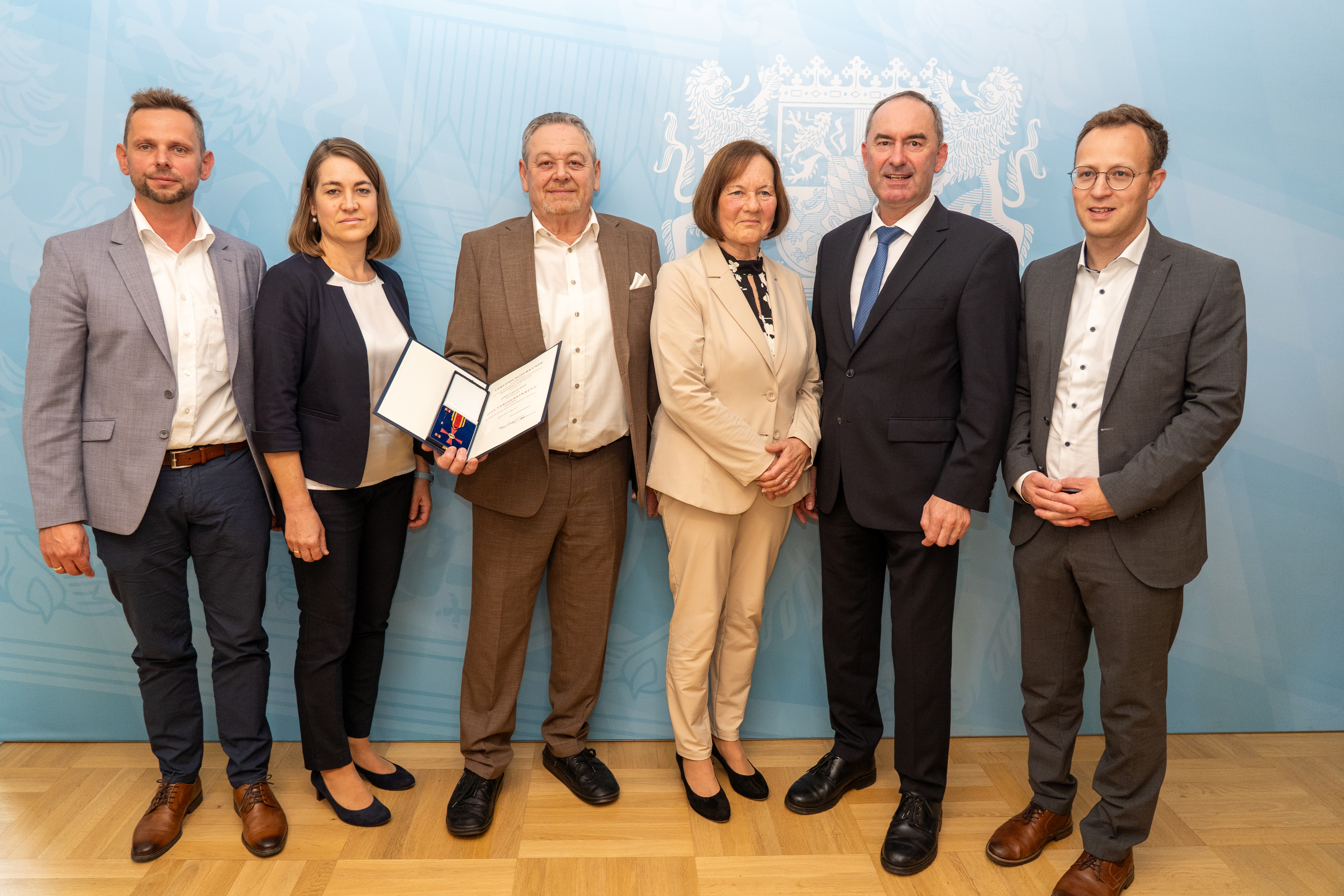 Staatsminister Hubert Aiwanger zeichnet im Rahmen einer feierlichen Aushändigungsveranstaltung im Bayerischen Staatsministerium für Wirtschaft, Landesentwicklung und Energie fünf Persönlichkeiten mit dem Verdienstkreuz am Bande des Verdienstordens der Bundesrepublik Deutschland aus.