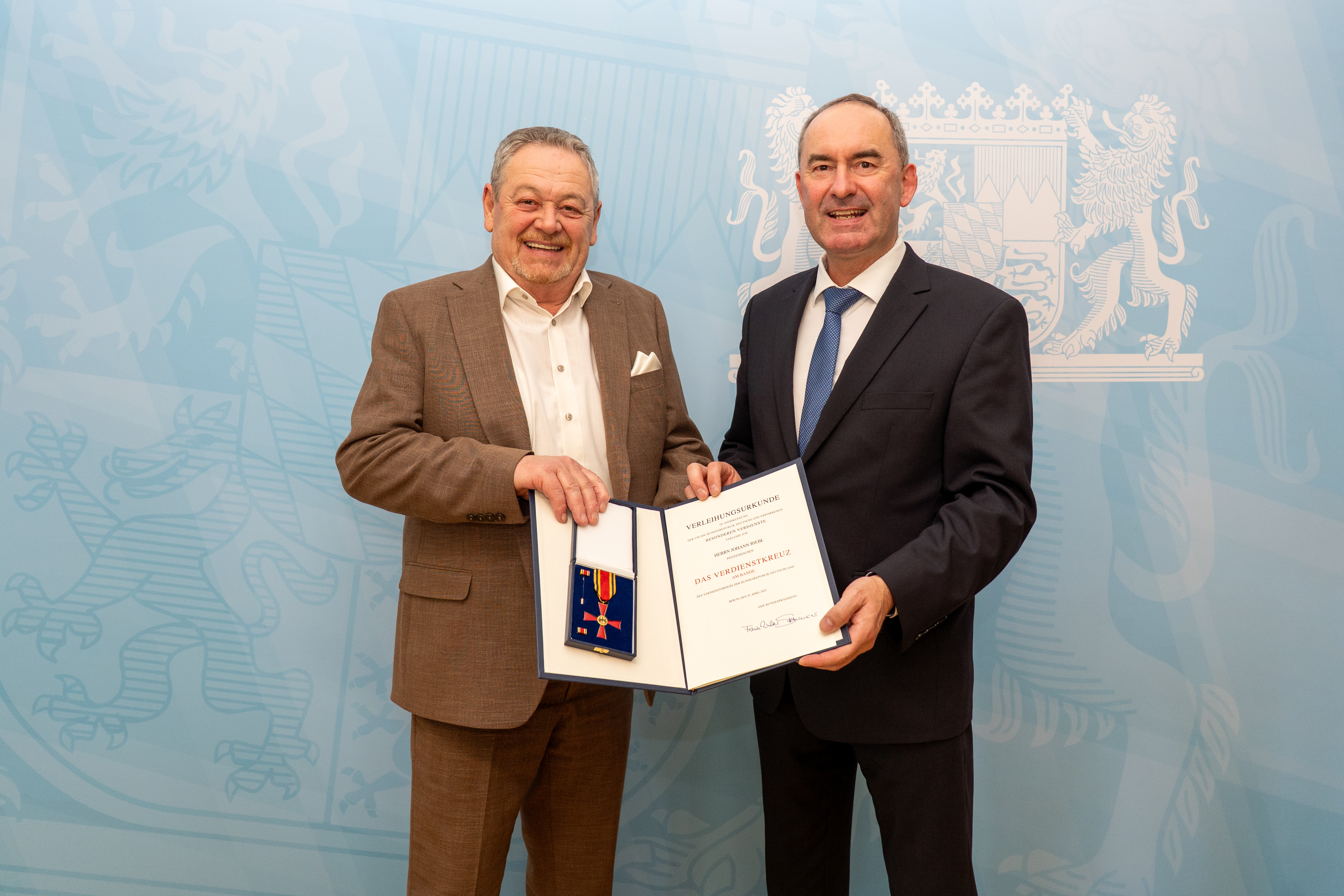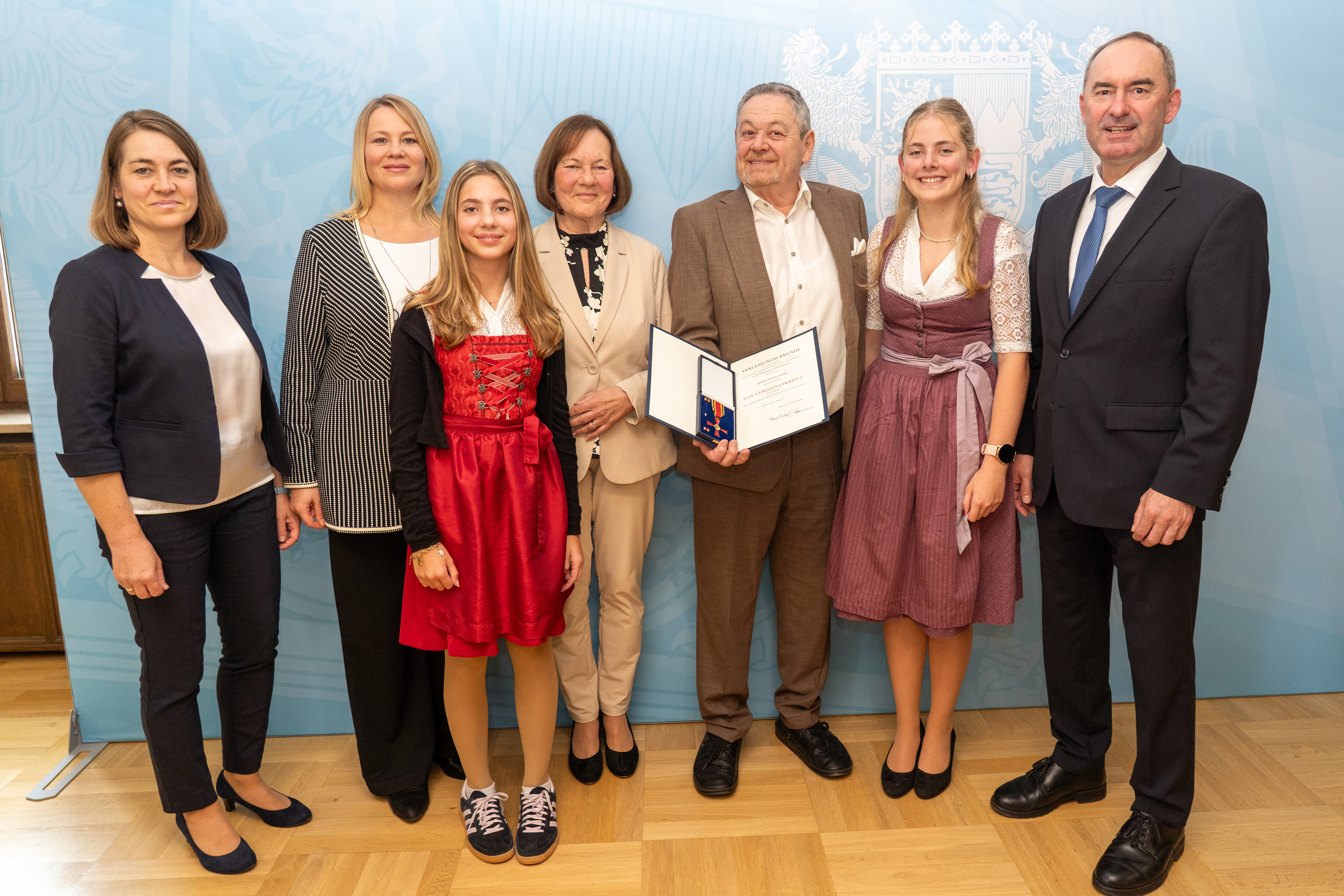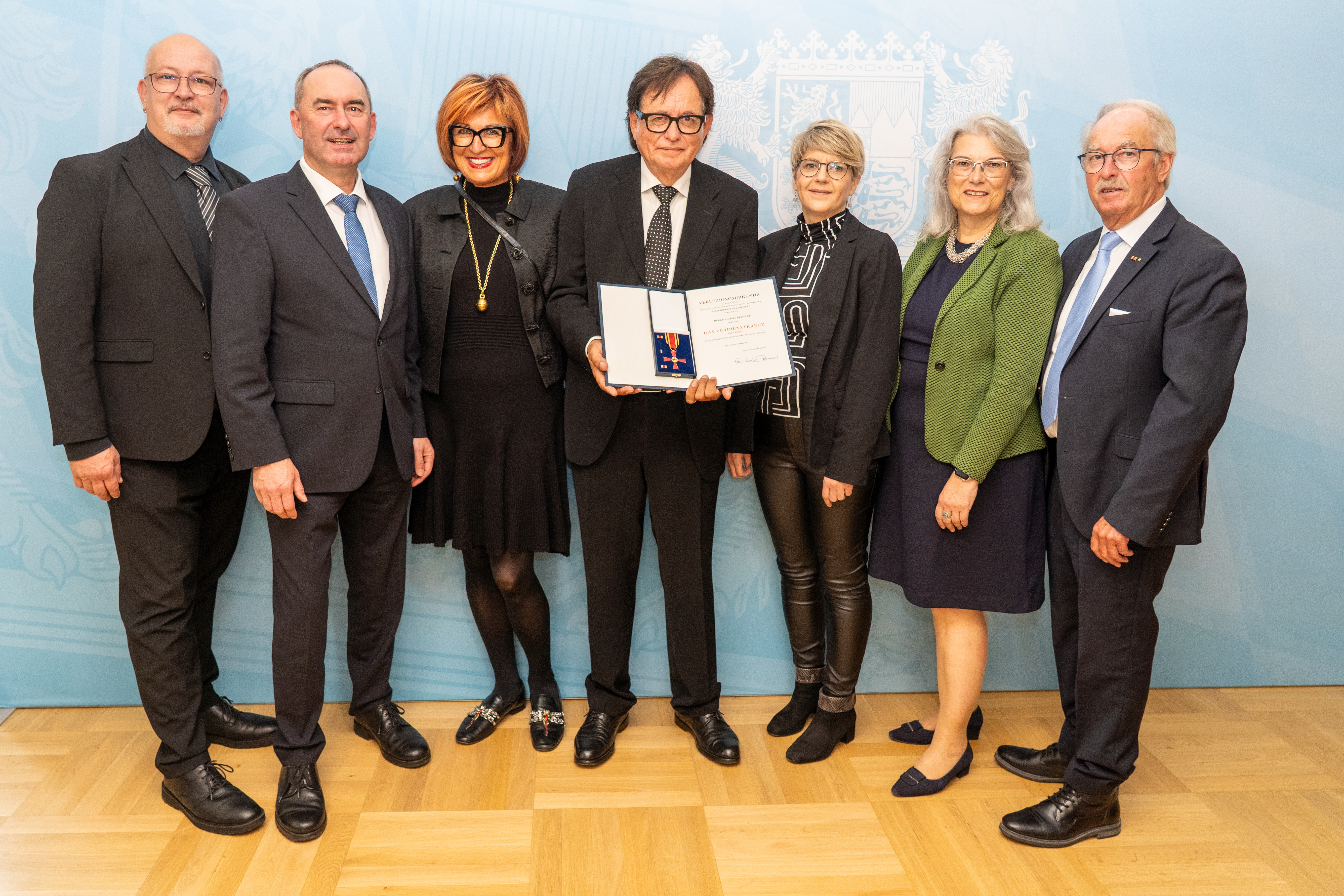 Staatsminister Hubert Aiwanger zeichnet im Rahmen einer feierlichen Aushändigungsveranstaltung im Bayerischen Staatsministerium für Wirtschaft, Landesentwicklung und Energie fünf Persönlichkeiten mit dem Verdienstkreuz am Bande des Verdienstordens der Bundesrepublik Deutschland aus.