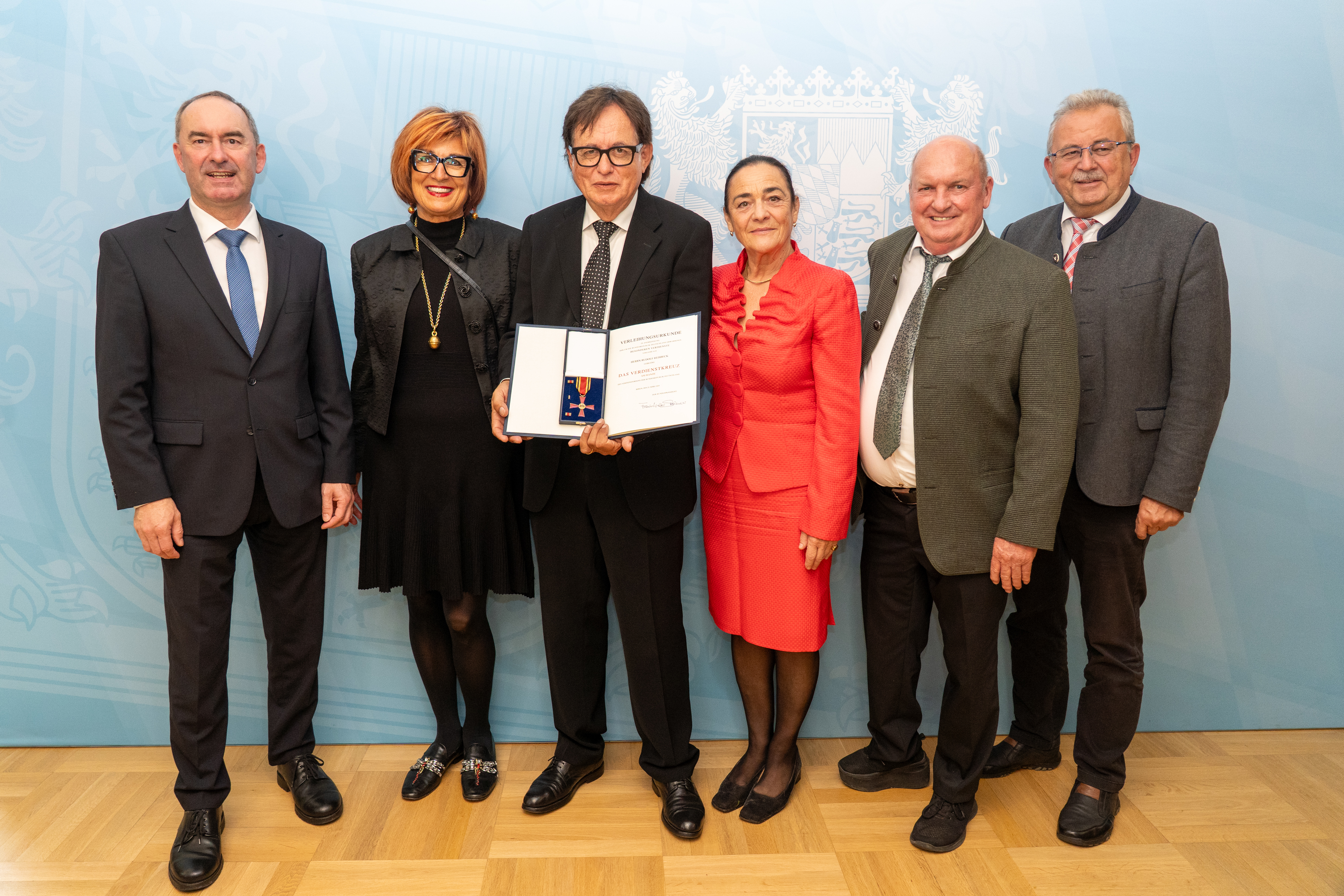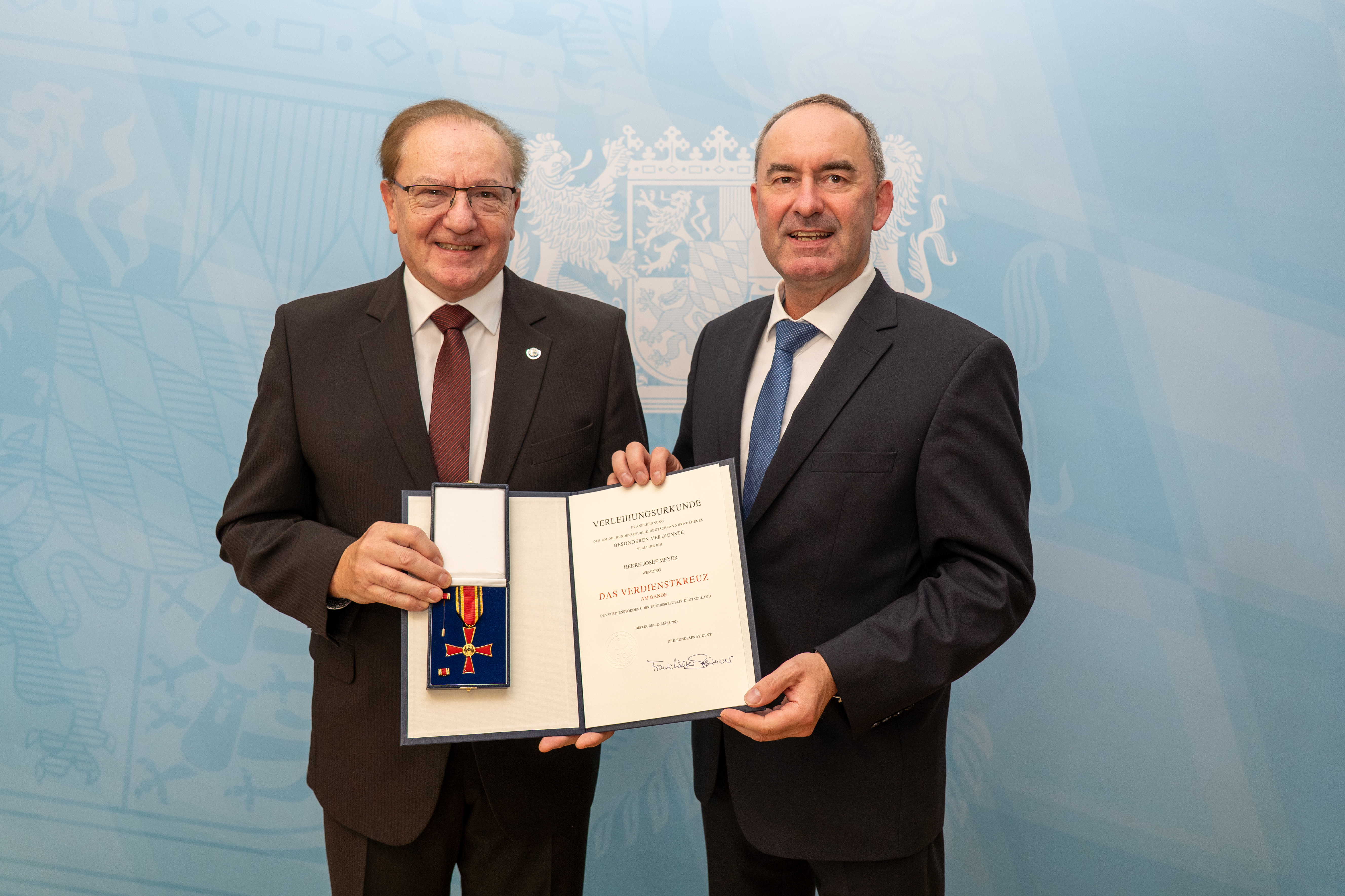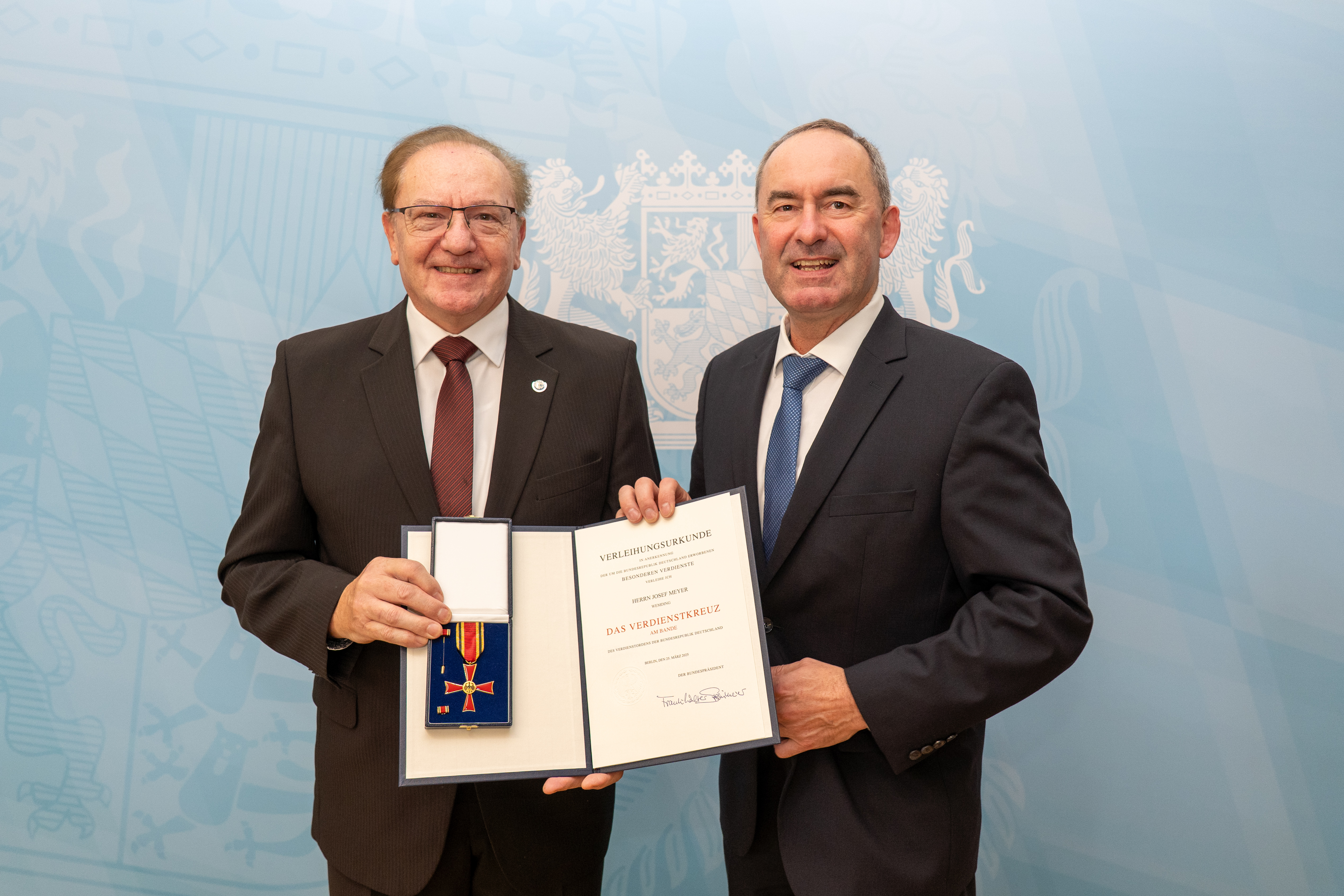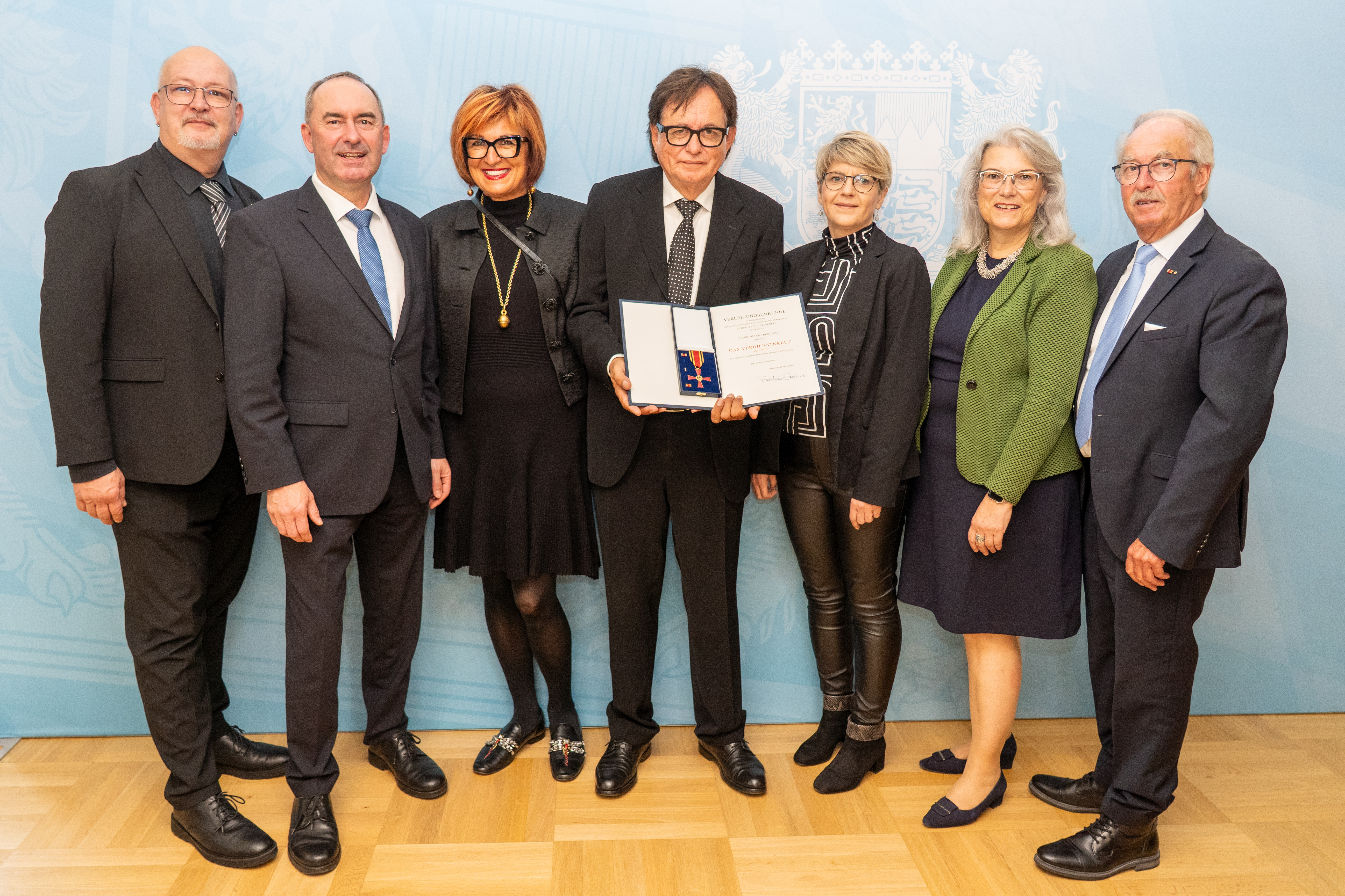 Staatsminister Hubert Aiwanger zeichnet im Rahmen einer feierlichen Aushändigungsveranstaltung im Bayerischen Staatsministerium für Wirtschaft, Landesentwicklung und Energie fünf Persönlichkeiten mit dem Verdienstkreuz am Bande des Verdienstordens der Bundesrepublik Deutschland aus.