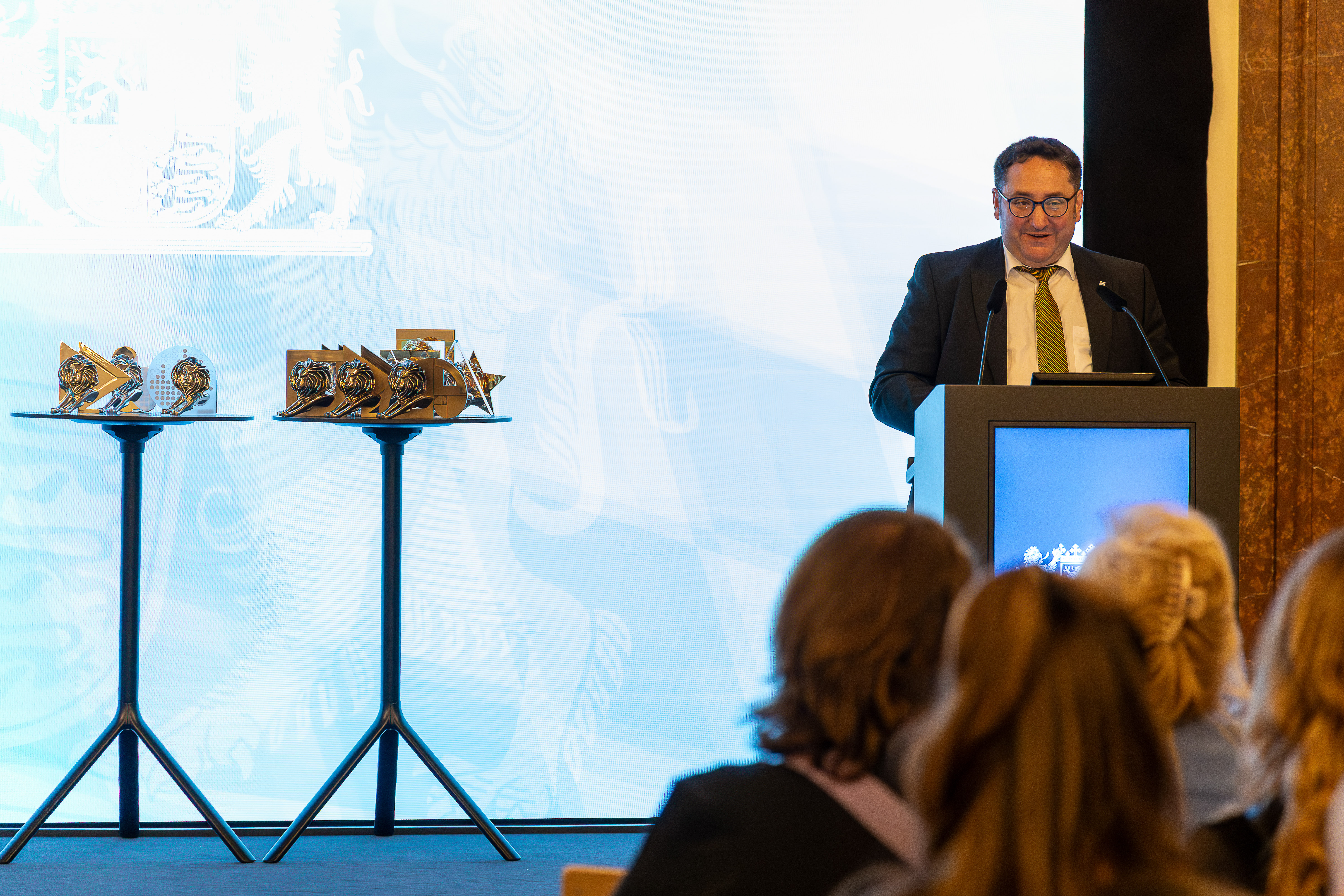 Tobias Gotthardt, Staatssekretär im Bayerischen Staatsministerium für Wirtschaft, Landesentwicklung und Energie, zeichnet gemeinsam mit dem Bayerischen Kommunikationsverband CommClubs Bayern e.V. die bayerischen Gewinner der diesjährigen Cannes Lions aus.