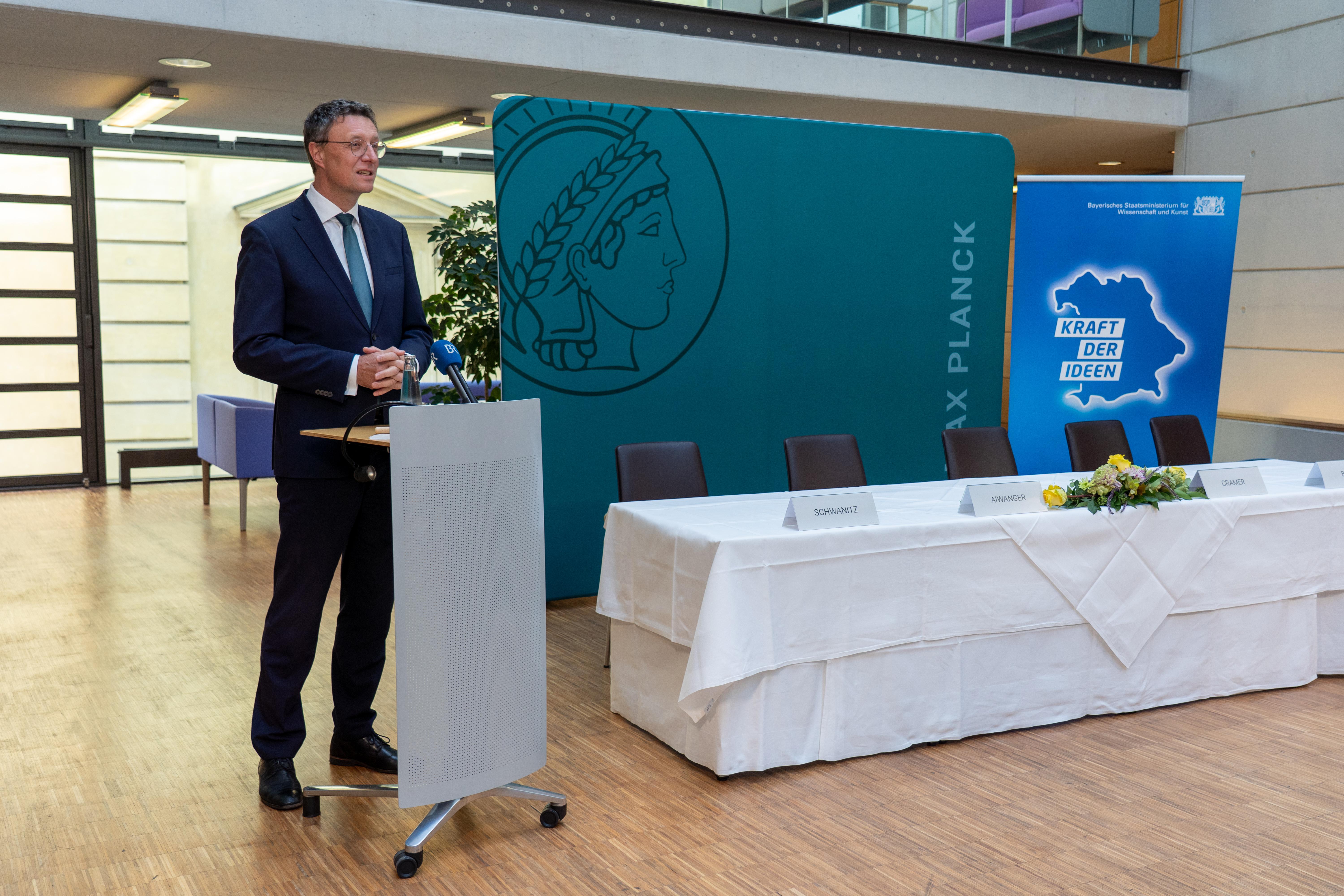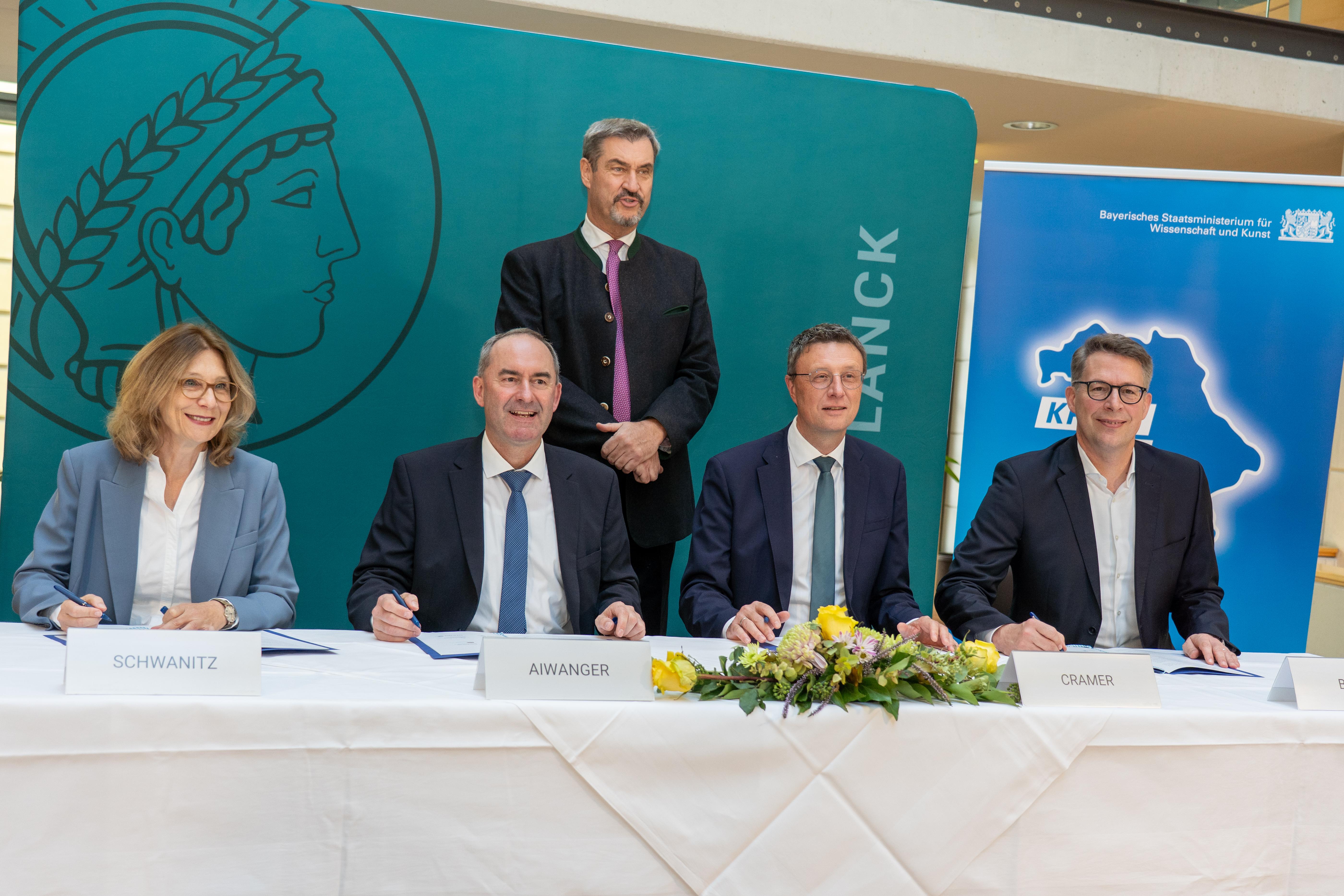 Die Max-Planck-Gesellschaft beabsichtigt die Gründung eines neuen Instituts mit mindestens zwei Abteilungen in Würzburg in Kooperation mit Lehrstühlen der Julius-Maximilians-Universität Würzburg (JMU) und dem Universitätsklinikum Würzburg. Bayerns Wirtschaftsminister Hubert Aiwanger nimmt an der Unterzeichnung der Absichtserklärung zum neuen Institutsstandort in Würzburg teil und hält ein kurzes Grußwort.