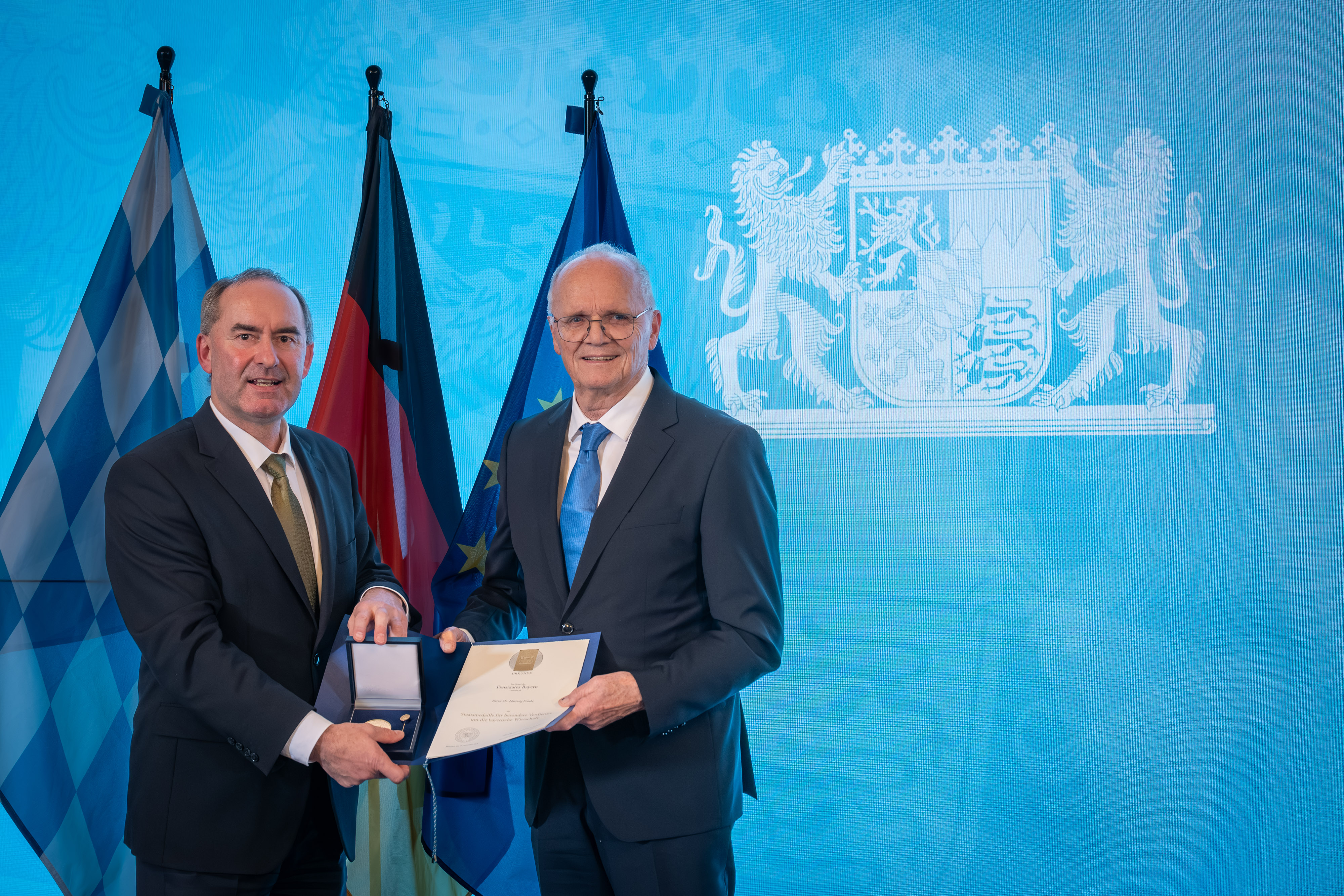 Bayerns Wirtschaftsminister Hubert Aiwanger verleiht die Staatsmedaille für besondere Verdienste um die bayerische Wirtschaft. Bild herunterladen 4 MB