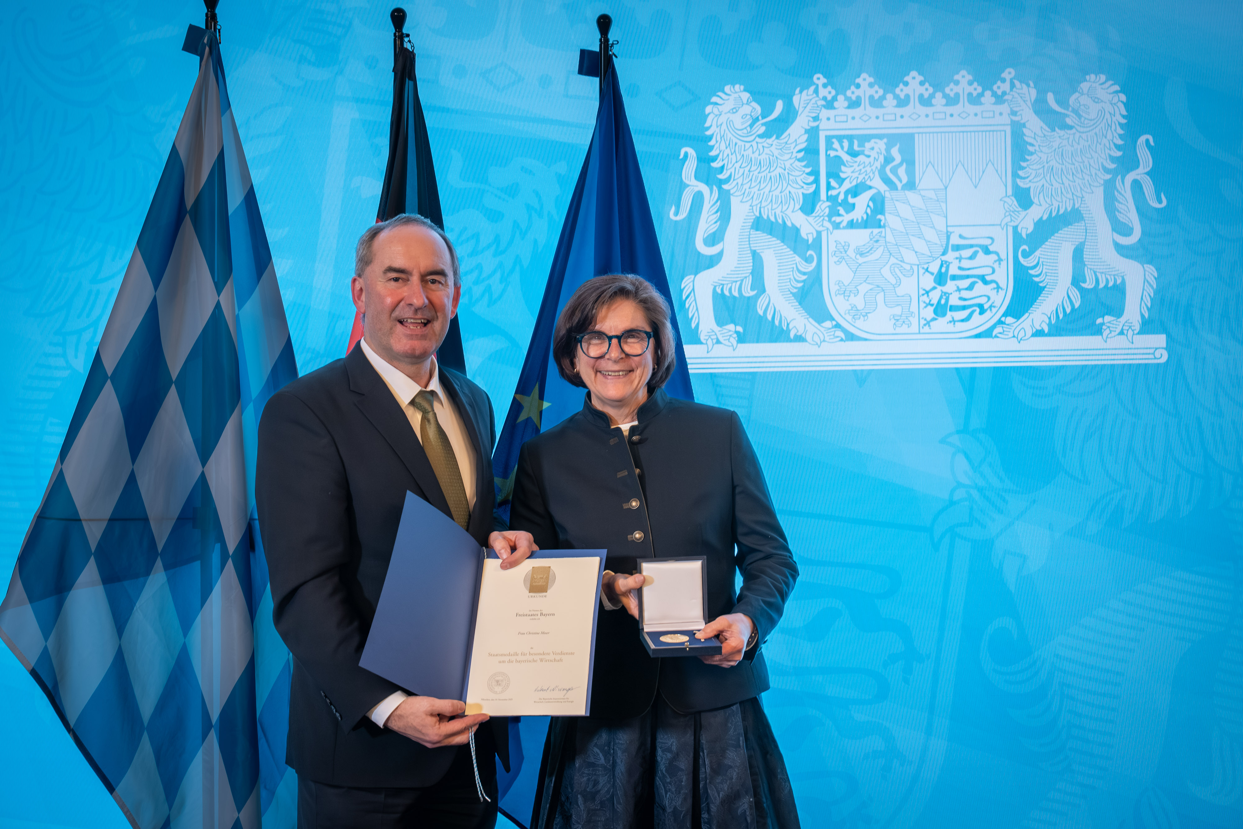 Bayerns Wirtschaftsminister Hubert Aiwanger verleiht die Staatsmedaille für besondere Verdienste um die bayerische Wirtschaft. Bild herunterladen 2 MB
