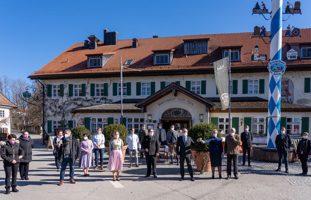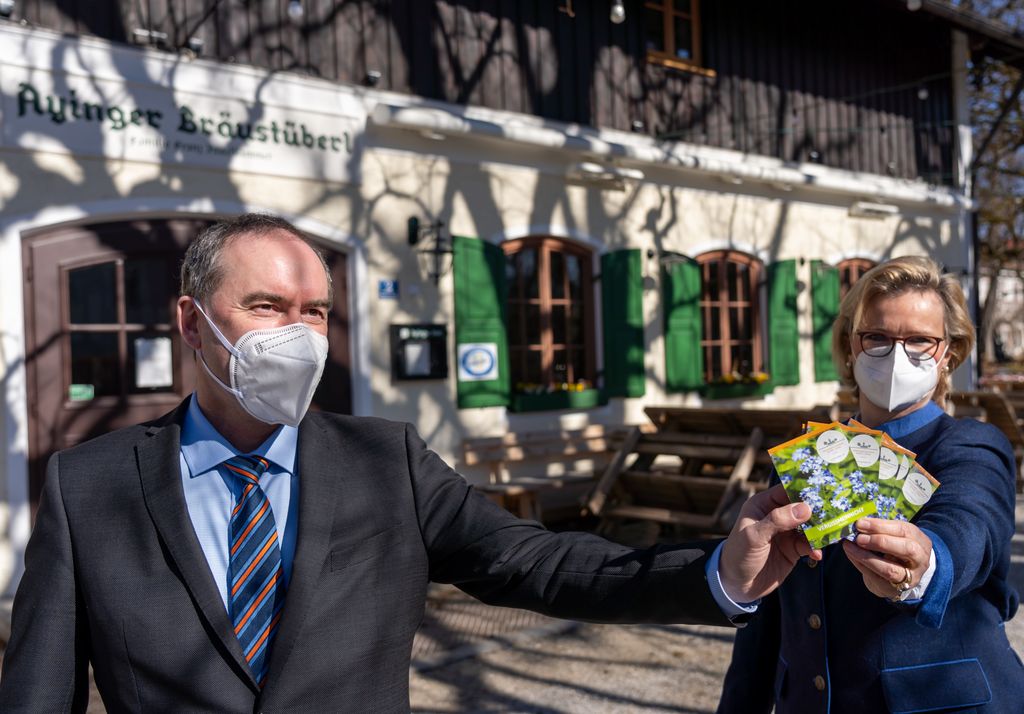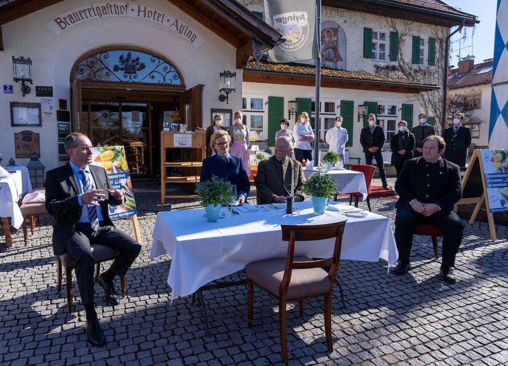 Bayerns Wirtschaftsminister Aiwanger besucht anlässlich der bundesweiten Aktion "Gedeckter Tisch" die Präsidentin des Bayerischen Hotel- und Gaststättenverbandes (DEHOGA Bayern) Angela Inselkammer in Aying