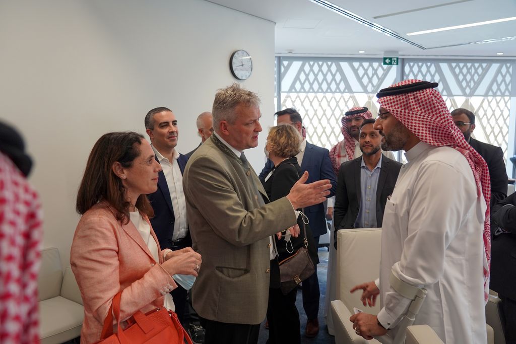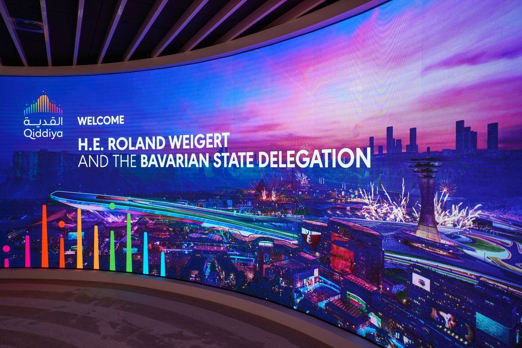 Bayerns Wirtschaftsstaatssekretär Roland Weigert wird im Headquarter des Tourismusprojektes Qiddiya willkommen geheißen. Eingebettet in die spektakuläre Felsplateau-Landschaft 50 Kilometer westlich von Riad entsteht auf einer Fläche zweieinhalb Mal so groß wie Disney World Orlando ein Unterhaltungsareal der Superlative mit Formel-1-Kurs, Sportstadion und Weltrekord-Achterbahn.© StMWi/T.Assenbrunner Bild herunterladen 12 MB