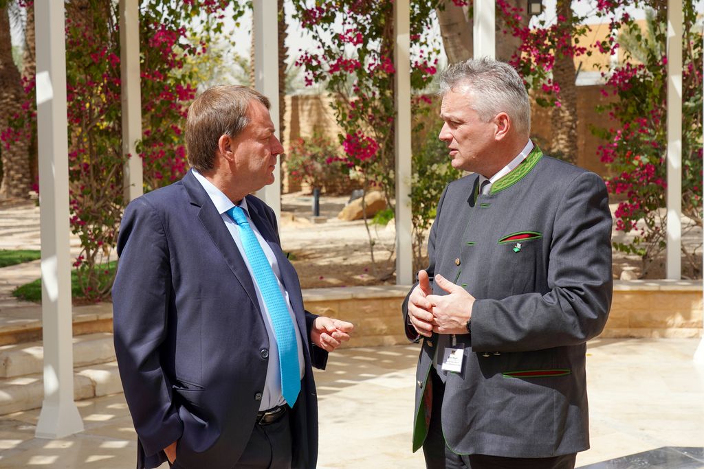 Bayerns Wirtschaftsstaatssekretär Roland Weigert im Gespräch mit einem Vize-Minister des saudi-arabischen Investitionsministeriums. © StMWi/T.Assenbrunner Bild herunterladen 10 MB